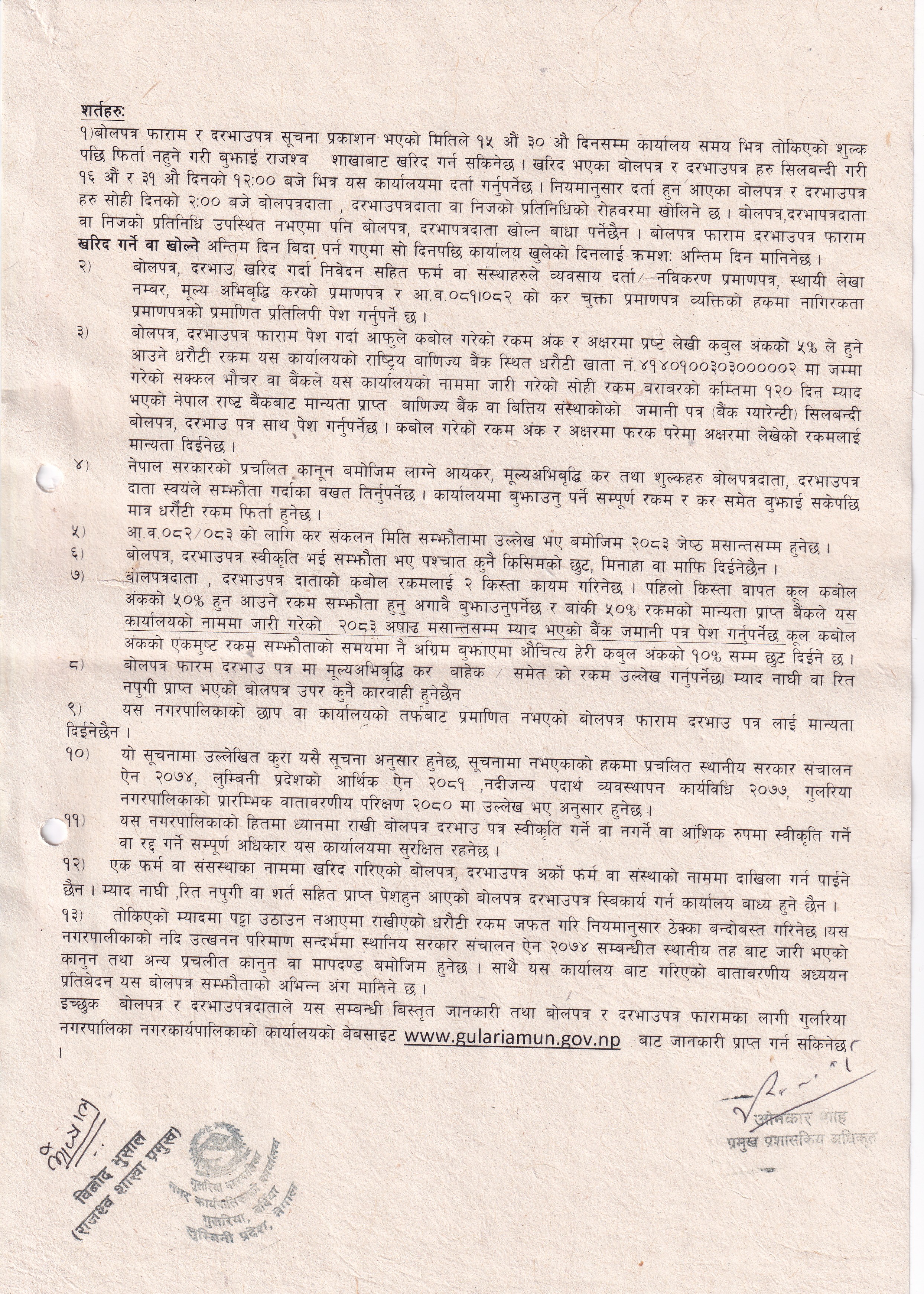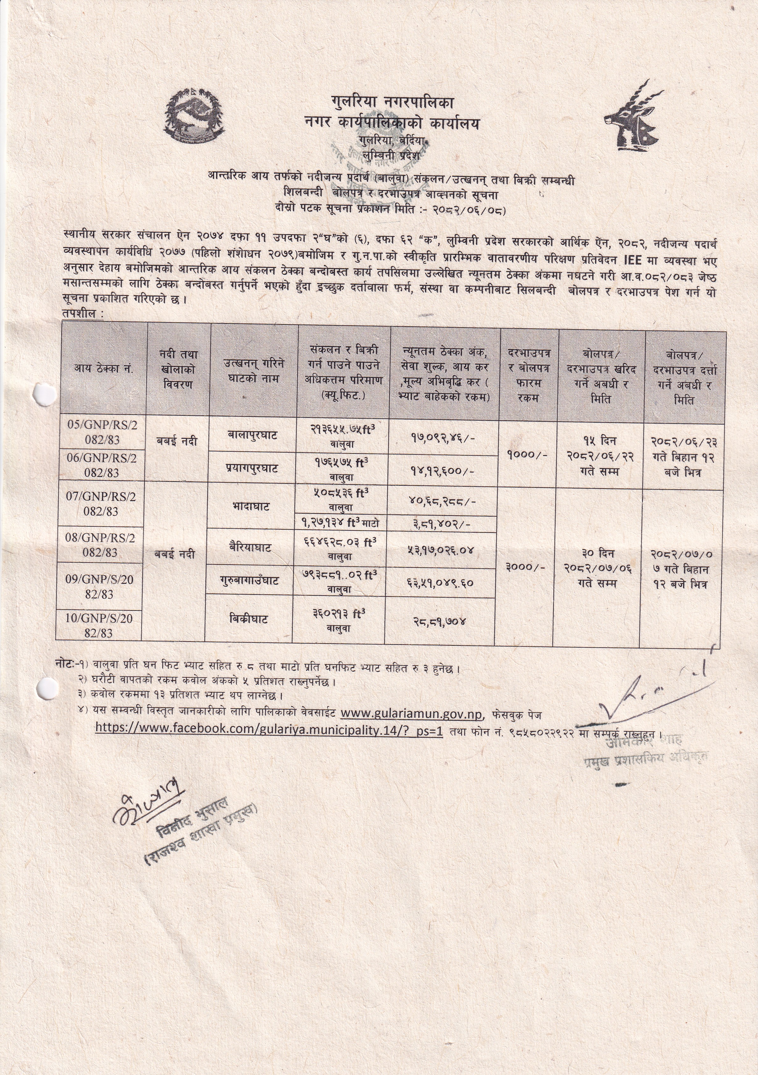 आन्तरिक आय तर्फको नदीजन्य पदार्थ (बालुवा) संकलन/उत्खनन् तथा बिक्री सम्बन्धी शिलबन्धी बोलपत्र र दरभाउपत्र आव्हानको दोस्रो पटक प्रकाशित सूचना!!!