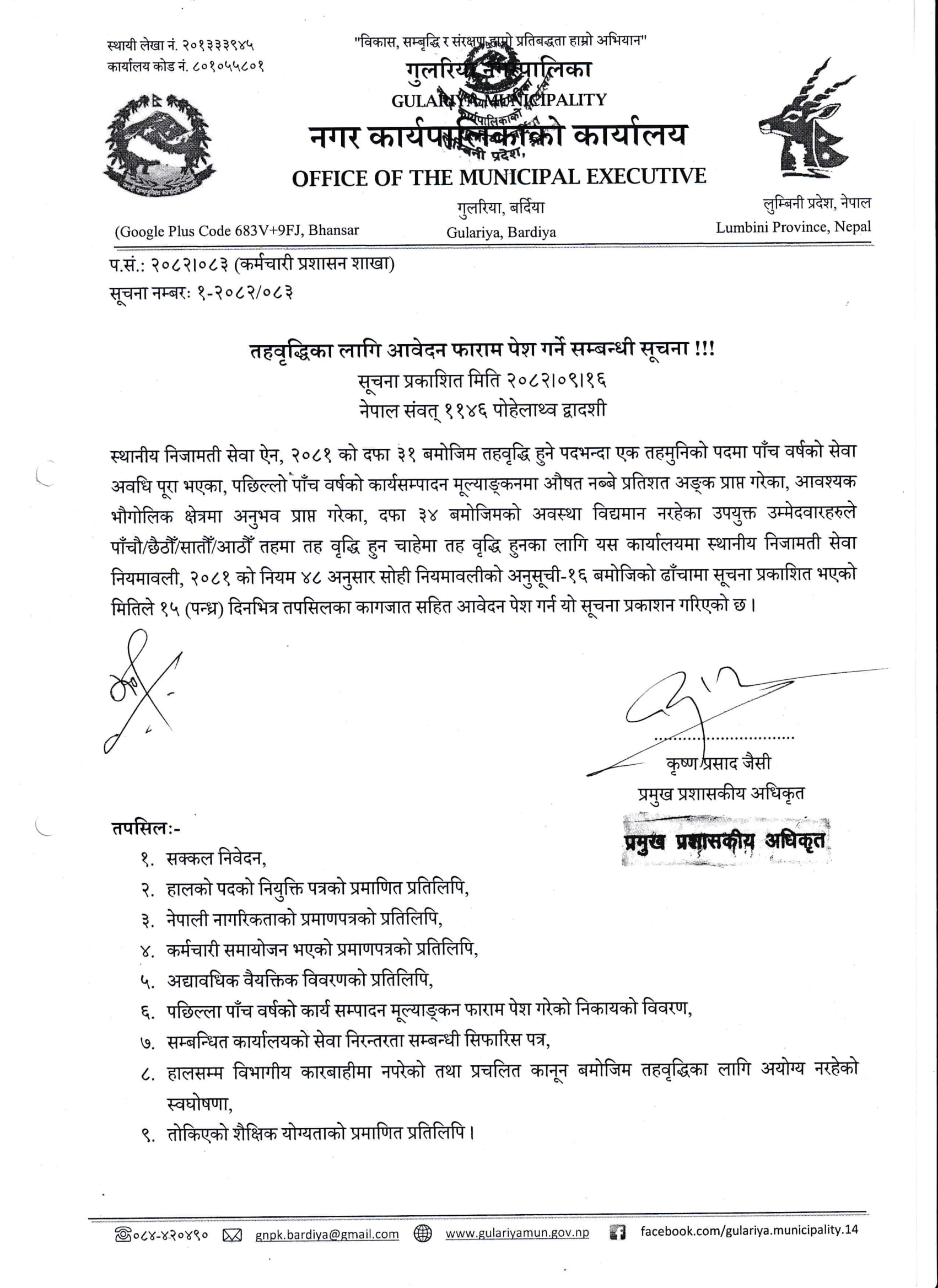 तहवृद्धिका लागि आवेदन फारम पेश गर्ने सम्बन्धी सूचना!!!