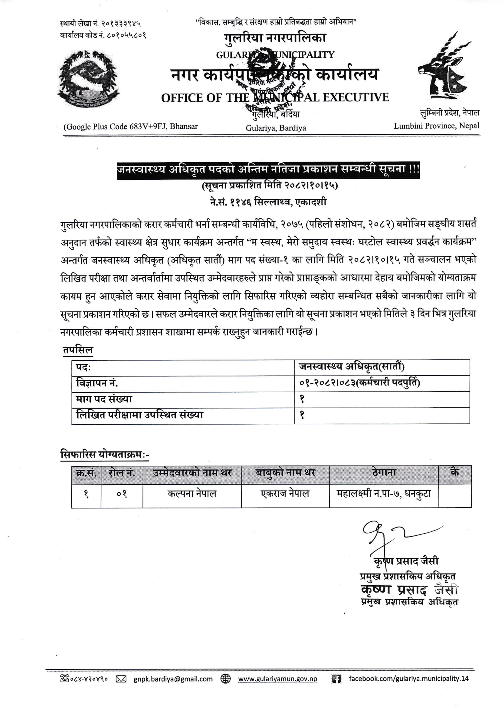 info@gulariyamun.gov.np / gnpk.bardiya@gmail.com