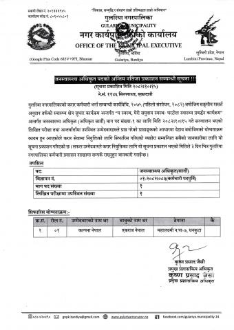 जनस्वास्थ्य अधिकृत पदको अन्तिम नतिजा प्रकाशन सम्बन्धी सूचना!!!