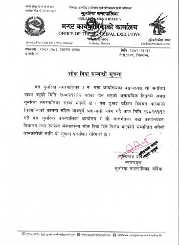 शोक विदा सम्बन्धी सूचना!!!