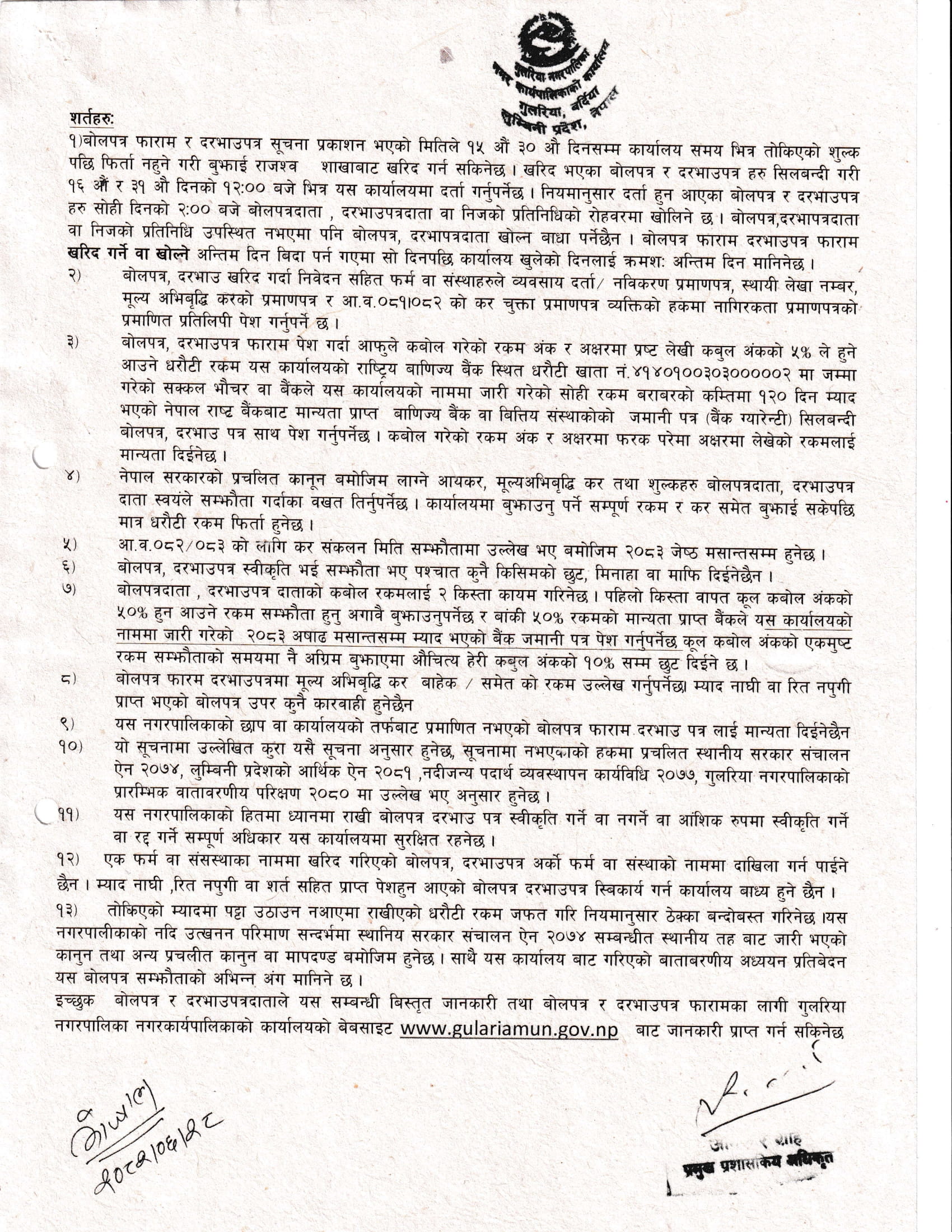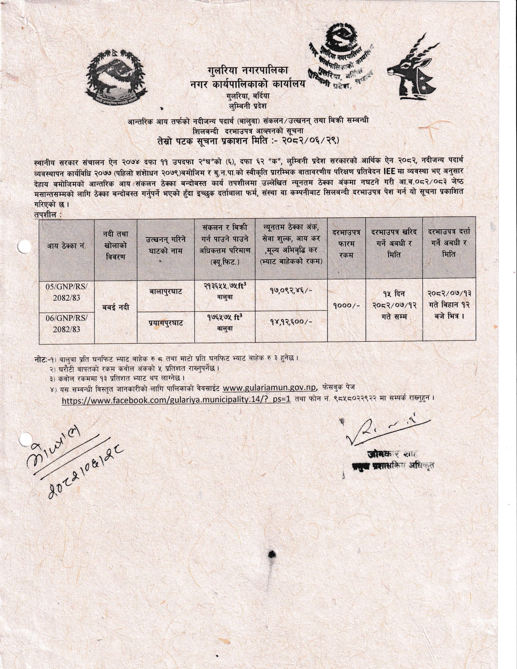 आन्तरिक आय तर्फको नदीजन्य पदार्थ (बालुवा) संकलन/उत्खनन् तथा बिक्री सम्बन्धी शिलबन्धी दरभाउपत्र आव्हानको तेस्रो पटक प्रकाशित सूचना!!!