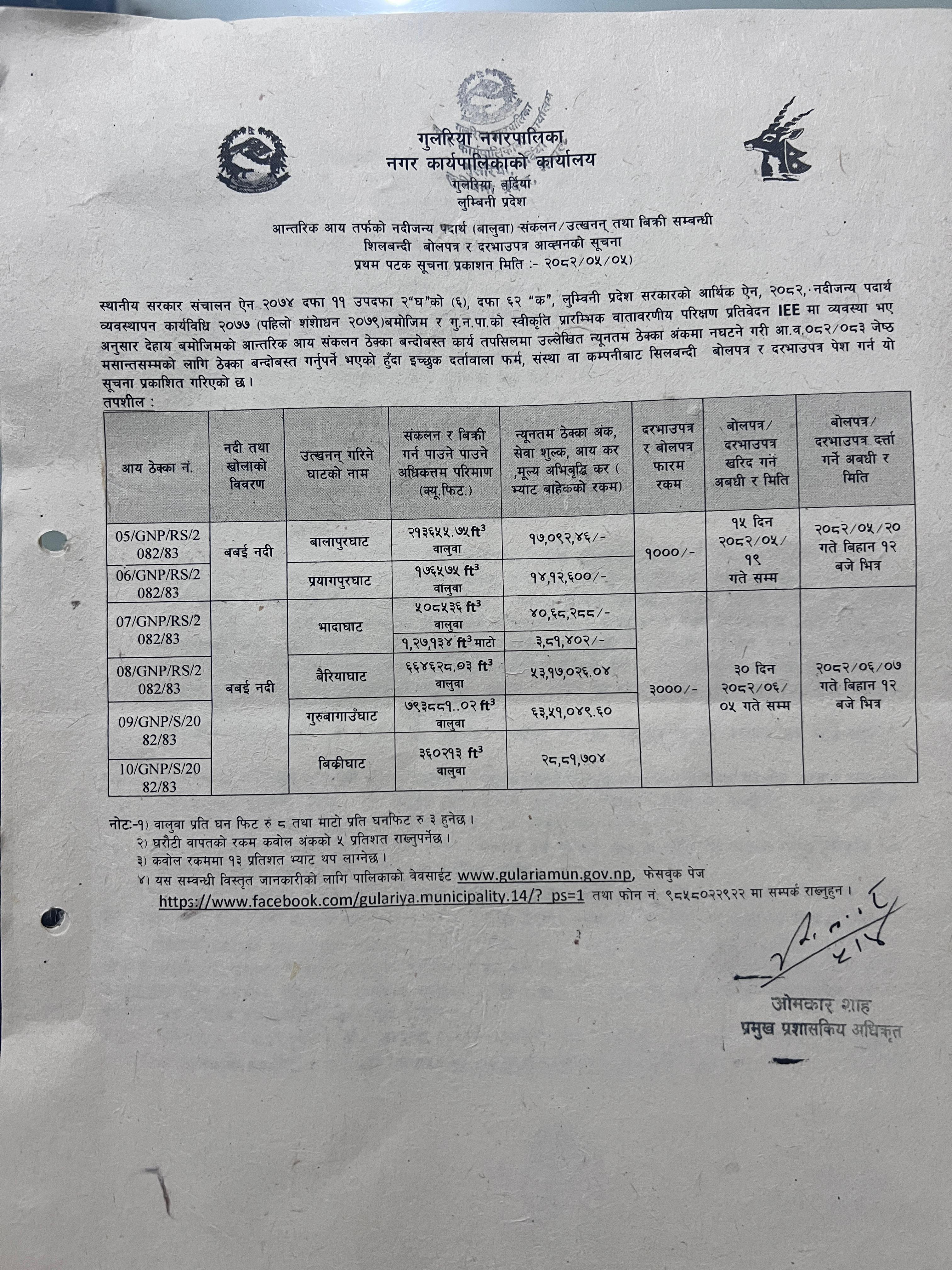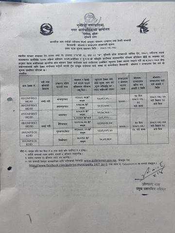 आन्तरिक आय तर्फको नदीजन्य पदार्थ (बालुवा) संकलन/उत्खनन् तथा बिक्री सम्बन्धी शिलबन्धी बोलपत्र र दरभाउपत्र आव्हानको सूचना!!!