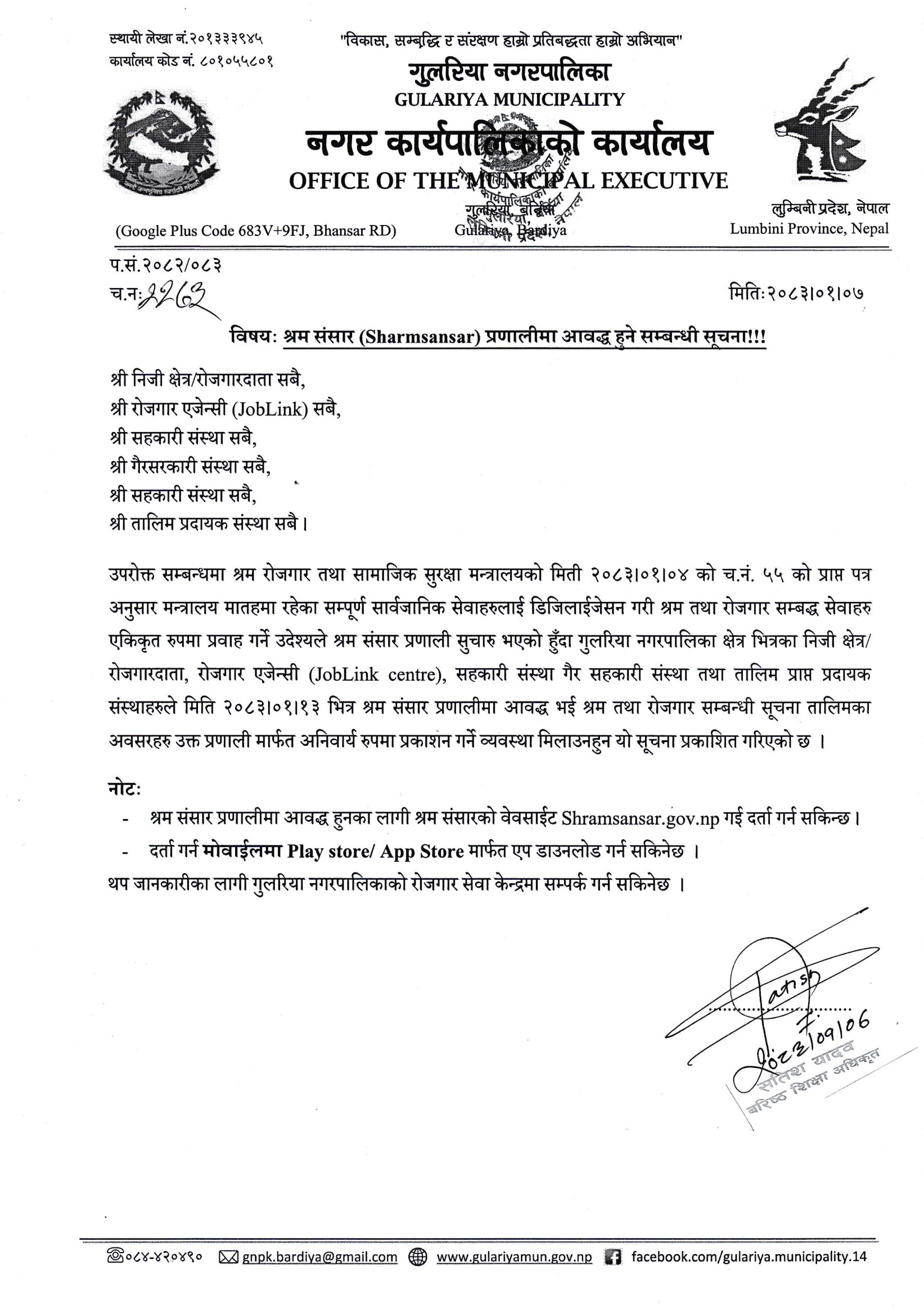 श्रम संसार (Shramsansar) प्रणालीमा आबद्ध हुने सम्बन्धी सूचना!!!